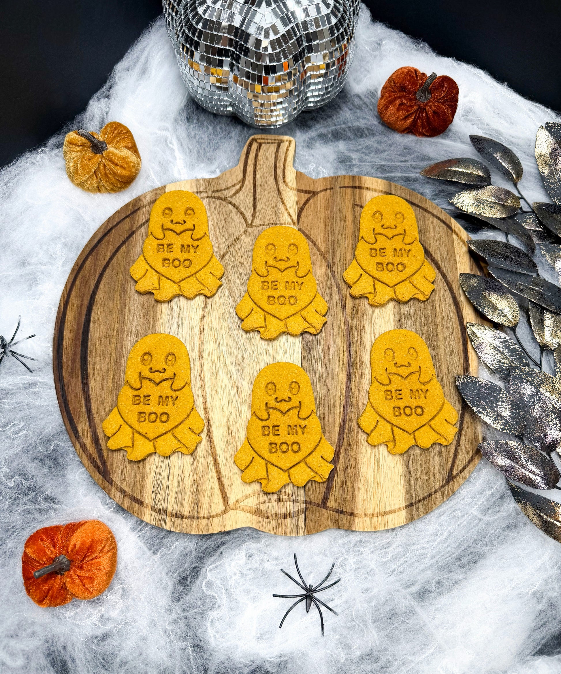 Give your pup a Halloween treat that’s spooky, sweet, and totally Instagram-worthy! Our Be My Boo Treat Bag includes 6 homebaked treats and a ghost holding a “Be My Boo” sign. Made with wholesome, dog-friendly ingredients, these treats are a safe and tasty snack, and their festive design makes them perfect for Instagram-worthy Halloween photos.